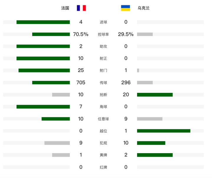在北京时间11月14日结束的世界杯欧洲区预选赛D组一场焦点战中盈胜优配,世界排名第3的法国男足在主场4-0完胜乌克兰男足。上半场,巴尔科拉中柱。下半场,姆巴佩梅开二度并且送上助攻,奥利塞和埃基蒂克锁定胜局。