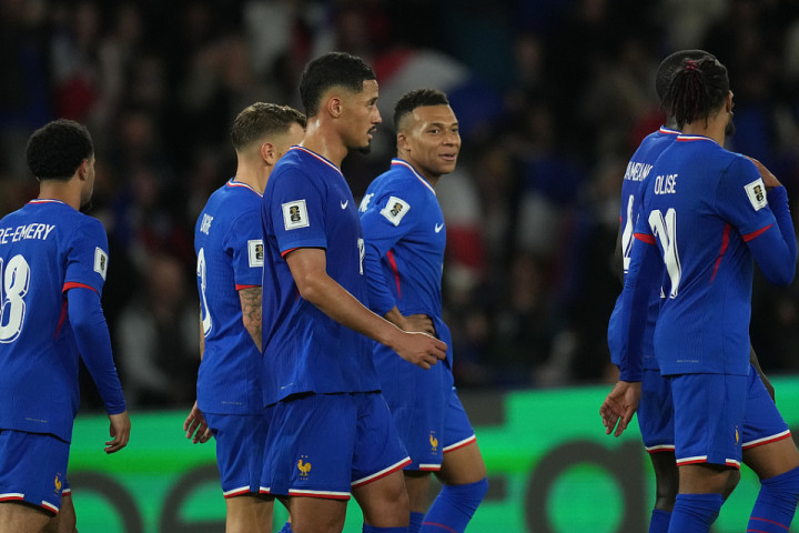 法国首发:16-迈尼昂、5-孔德(89'2-古斯托)、17-萨利巴、4-于帕梅卡诺、3-迪涅、13-坎特、8-科内(80'18-埃梅里)、11-奥利塞(89'7-恩昆库)、14-谢尔基(67'12-阿克利乌舍)、20-巴尔科拉(67'9-埃基蒂克)、10-姆巴佩