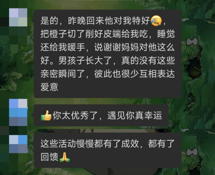 让CoCo印象深刻的,是位随妈妈一起参加活动的13岁小男孩。初见时,他和妈妈一起骑了两个小时自行车才赶到工作室,满脸通红、汗水淋漓,神情里写满了委屈。然而,几场同城活动之后,男孩渐渐敞开心扉,不仅成长为活动小助手,也开始主动向妈妈表达爱意。